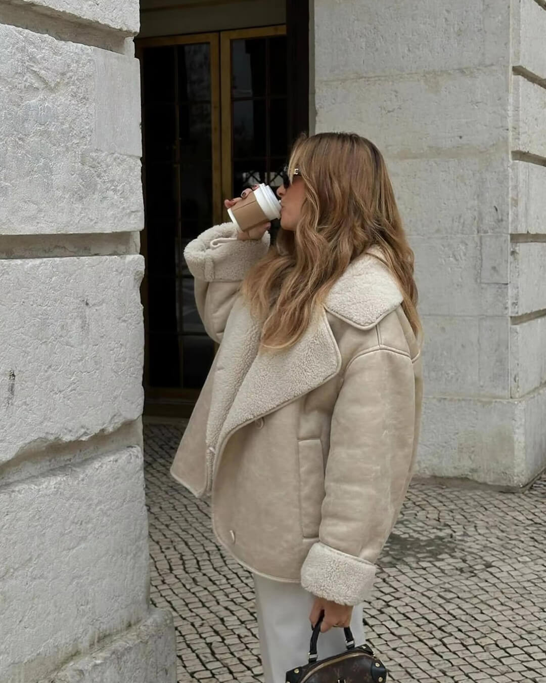 This vintage Arianne Sherpa Lined Leather Jacket not only offers warmth but also showcases a sophisticated style that is perfect for any occasion. Whether you're dressing up or keeping it casual, this jacket is a versatile addition to your collection.