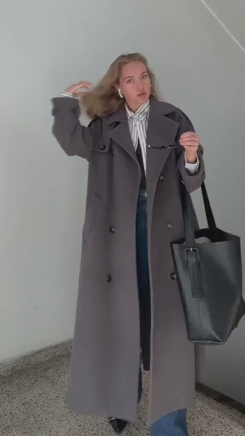 The Alicia Coat features a classic double-breasted closure and a sophisticated V-neck collar, giving it a refined, tailored appearance. Despite its structured look, the coat offers a loose, comfortable fit that is perfect for layering over chunky knits and sweaters. Crafted from high-quality premium polyester with a wool-like texture, it provides essential insulation while maintaining a lightweight feel.