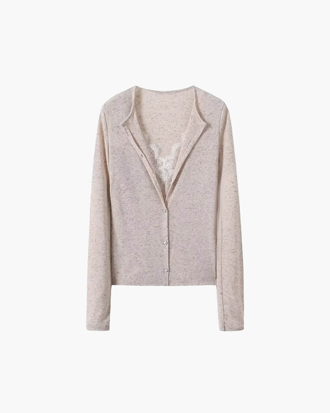 This vintage-inspired Ada Paneled Lace Trim Top is perfect for adding a touch of elegance to your wardrobe. Designed for comfort and style, it features a button-up front and long sleeves, making it a versatile piece for various occasions.