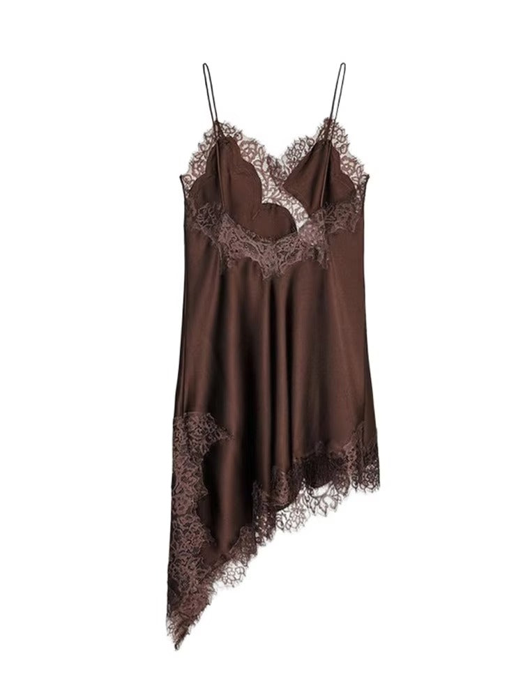 This stunning Kara Asymmetric Satin Lace Dress is perfect for summer parties and casual outings. Its flattering regular fit enhances your natural waistline, making it a versatile addition to your wardrobe.