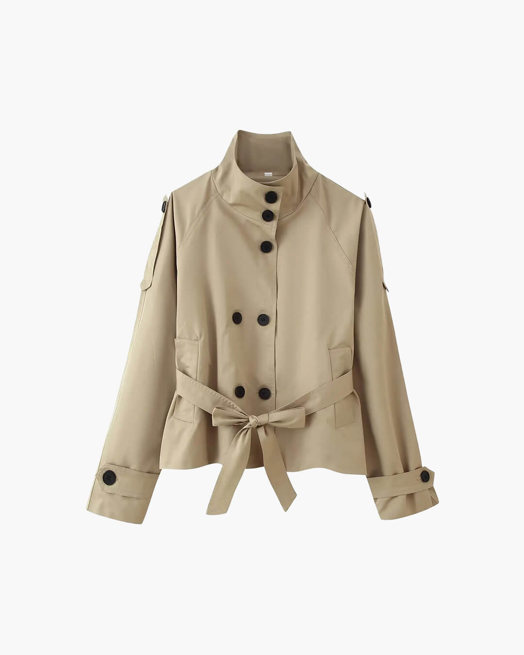 Elevate your transitional wardrobe with the Kara Stand Collar Belted Crop Trenchcoat, where classic utilitarian design meets contemporary street style. This piece is a masterclass in refined tailoring, featuring a sophisticated stand collar and a double-breasted front that exudes effortless prestige. Perfect for breezy spring mornings or cool summer evenings, its lightweight yet structured fabric offers the ideal layering solution. The adjustable belted waist allows you to customize your silhouette, while the modern cropped length adds a chic, high-fashion edge to any ensemble. Detailed with traditional shoulder epaulets, this trench coat is more than just outerwear—it’s a statement of enduring style and luxury for the modern woman who values both form and function.