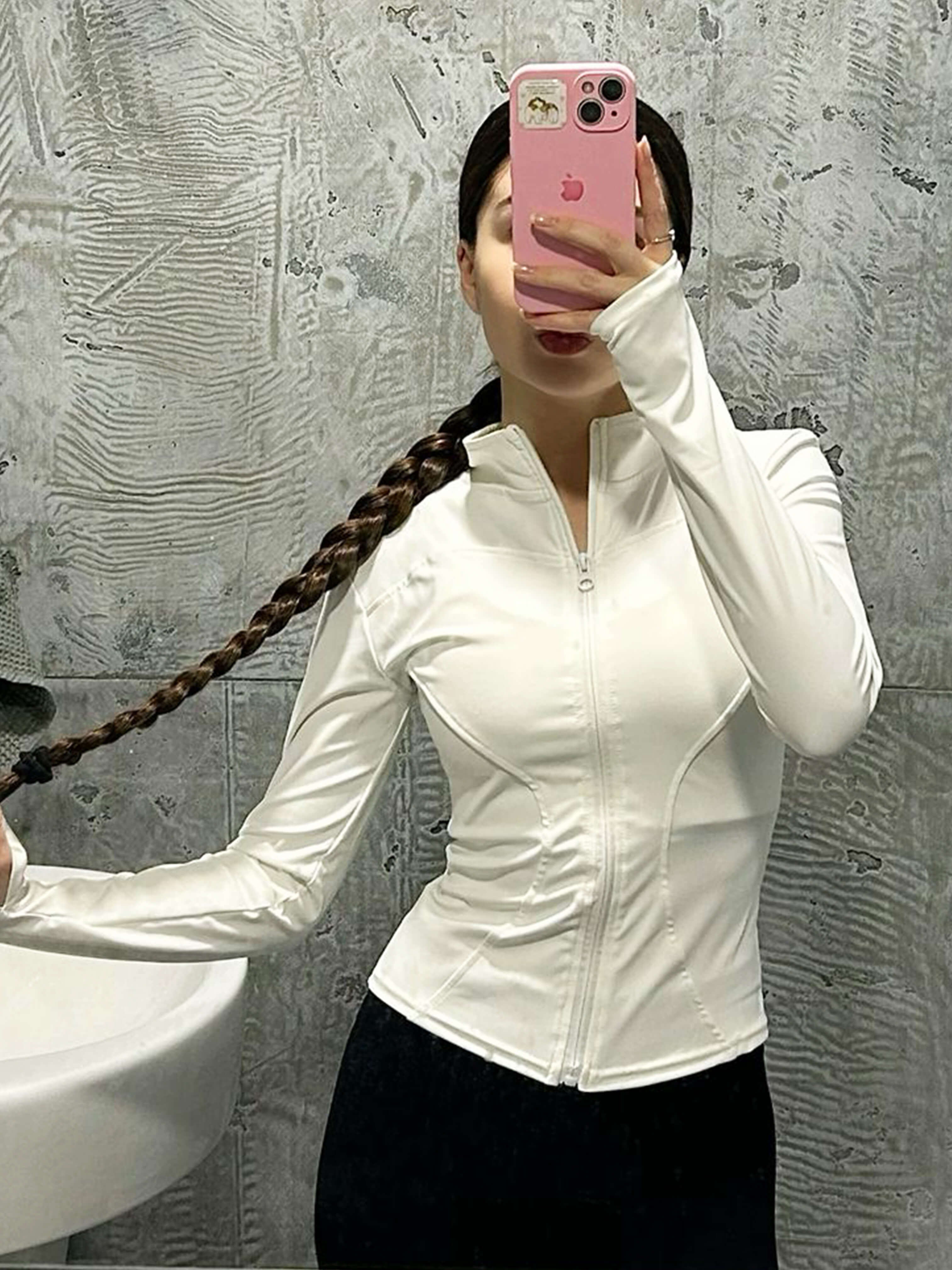 Introducing our Pilates Jacket, crafted from nylon and spandex for an effortless blend of style and function. This versatile jacket features a quick-dry fabric with a stand-up collar, making it perfect for everyday wear. With a sporty aesthetic, it seamlessly complements your look, whether you're hitting the gym, going for a run, or running errands in style. Elevate your collection with this essential piece this season.